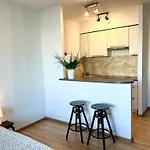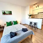 Con instalaciones de autoservicio como una pequeña cocina, el apartamento también cuenta con una zona de comedor exterior donde los huéspedes pueden relajarse y disfrutar de sus comidas. La parada de autobús más cercana al apartamento es Krzywoustego, a tan solo 5 minutos a pie.